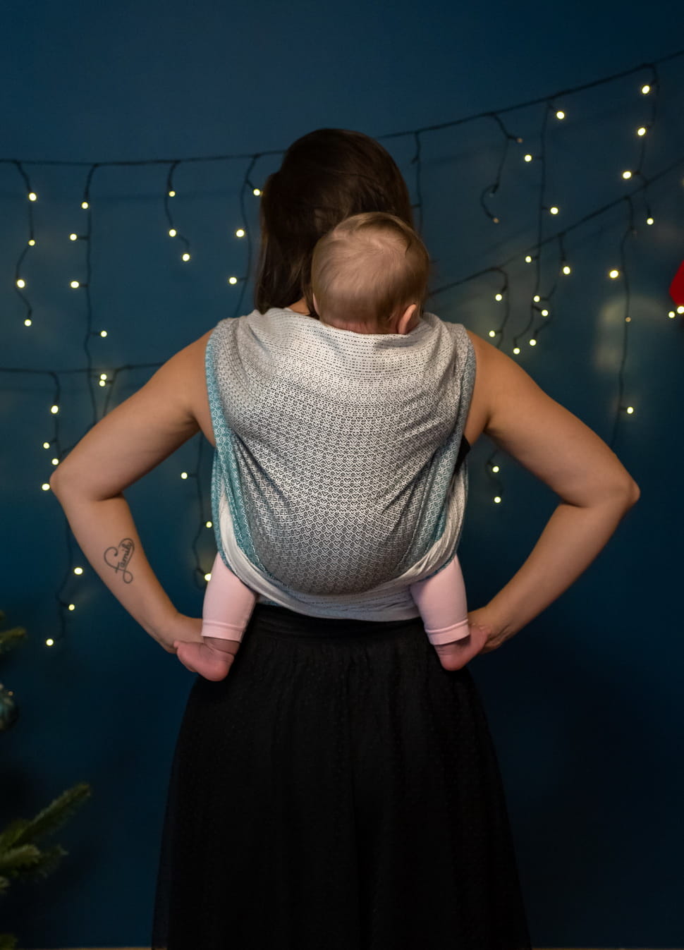 - fizjologiczną pozycję dziecka podczas noszenia, tak ważną i wspierającą naturalny rozwój na każdym etapie
